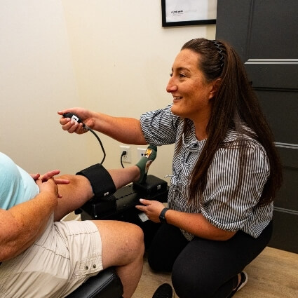 Each session is controlled by our staff using a tablet system that allows us to customize your treatment precisely. We’ll start with gentle settings and gradually progress based on how your knee responds to treatment, ensuring optimal results while maintaining your complete comfort.